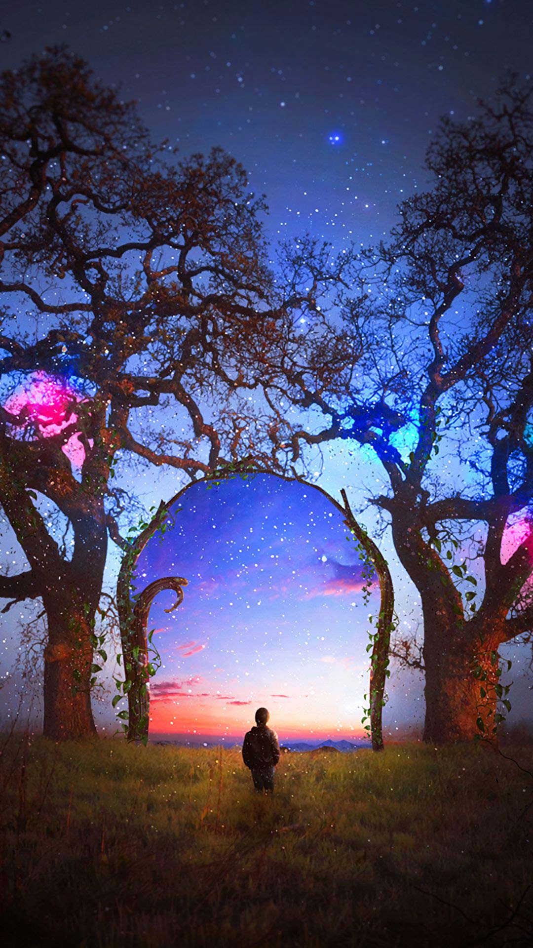 Description: Surreal, sunset, trees, lonely man, field, starry sky, 4k night wallpaper. Download free nature hd wallpaper and background image for your windows and mac desktop, laptop, tablet and phone. Author: Thiago Garcia License: Unlicensed.