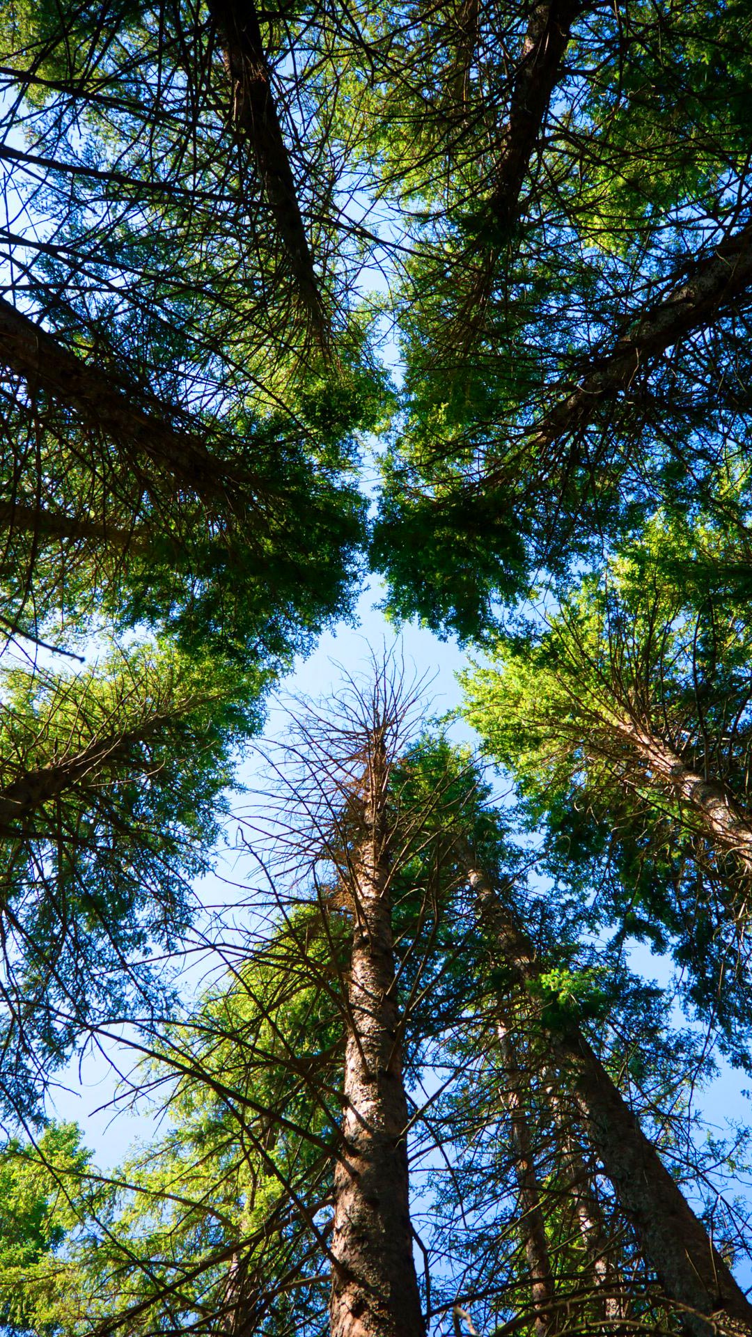 Description: Forest wallpaper from below. Download free nature hd wallpaper and background image for your Windows and Mac computer, laptop, tablet and phone. Author: sbmeaper1 (flickr) License: Public Domain.