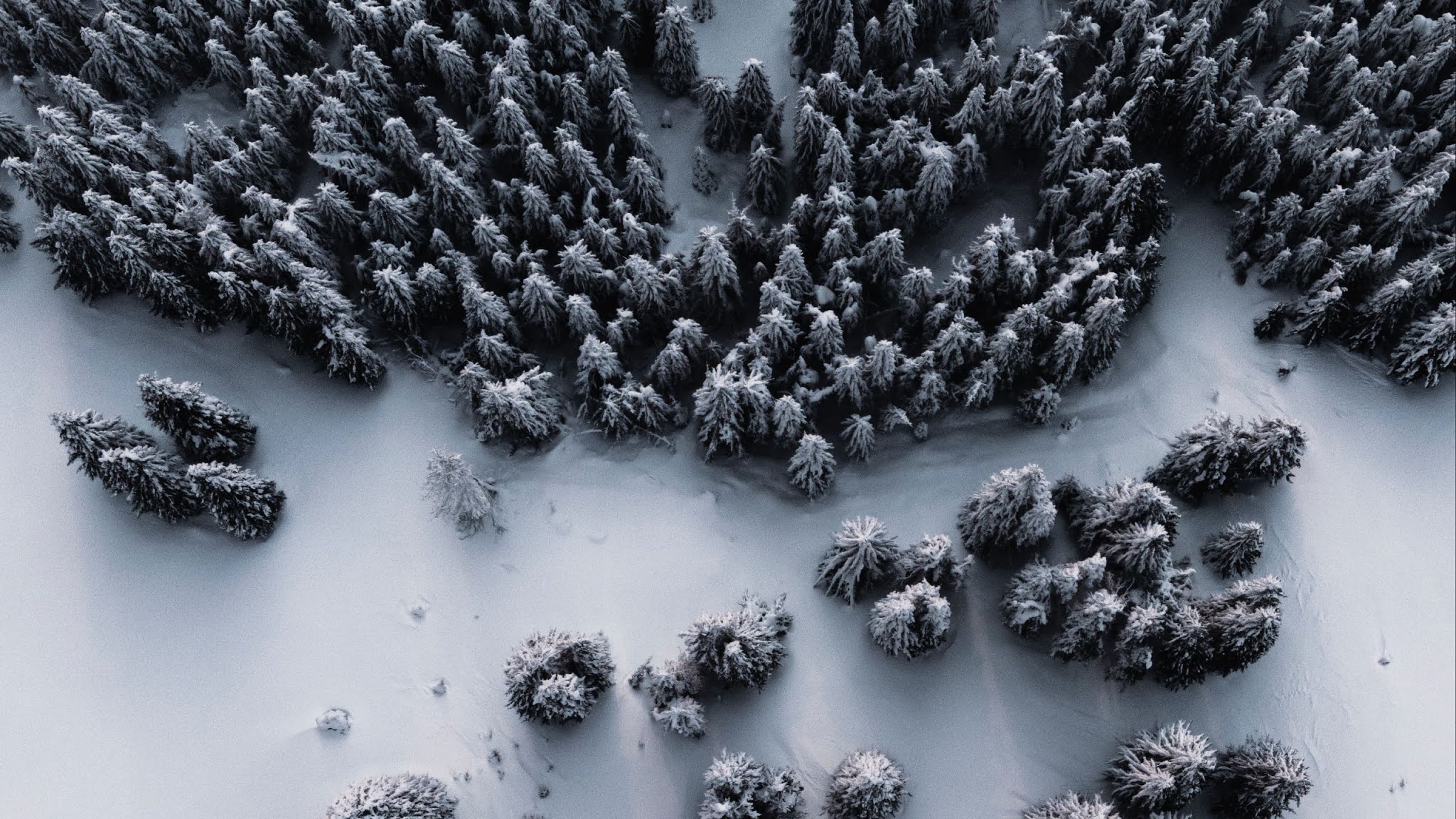 Free Download Wallpapers of Forest, Snow, Aerial view, Winter