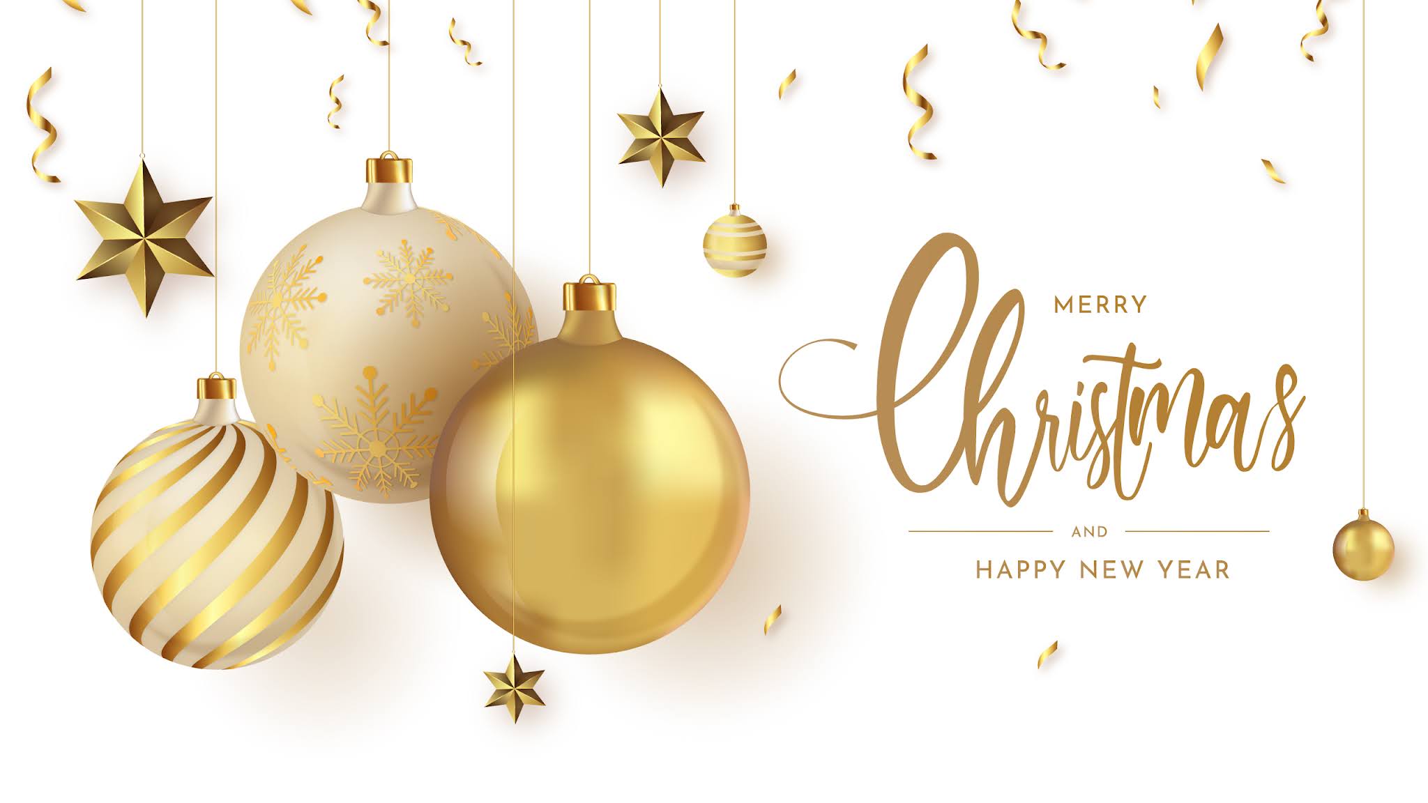 Description: Merry Christmas golden decoration on a white background. Download free HD Christmas wallpaper and background image for your Windows and Mac computer, laptop, tablet and phone. Author: Image edited by Alex Lima, Christmas vector by FreePik.