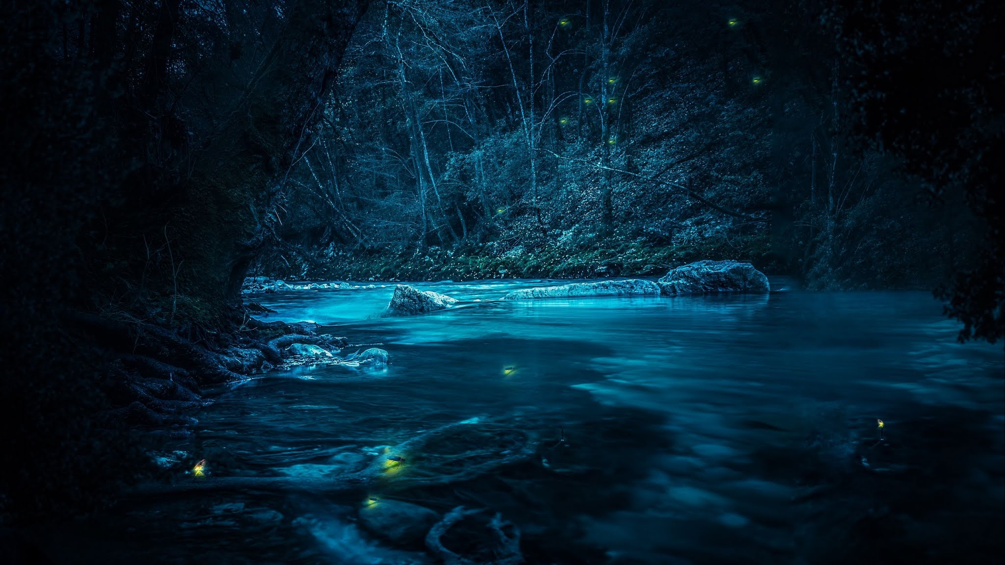 Free Download HD Wallpaper Beautiful Night Forest River Moon