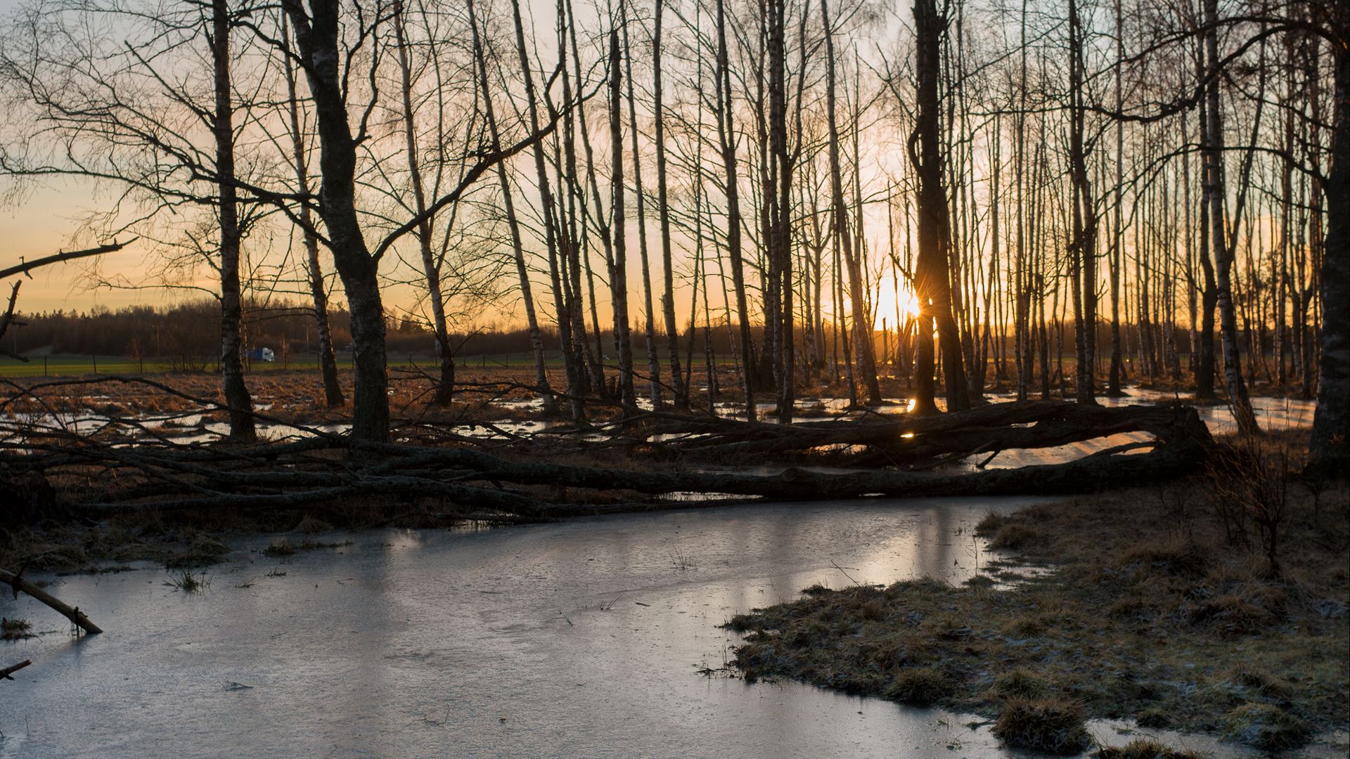 HD wallpaper Sun, Dawn, Stream, ice, trees, nature+ Download Wallpapers