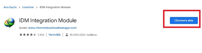- Step 1: From here IDM Chrome extension opening the page Chrome’a ekle click button.