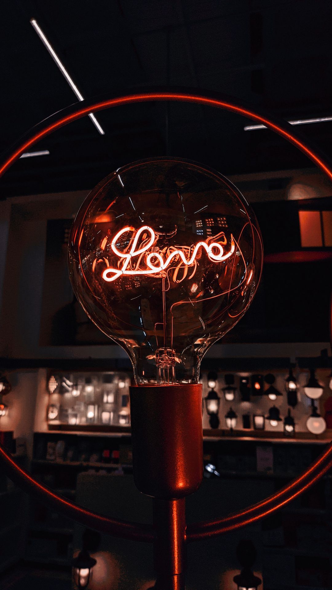 Love Wallpaper, Light Bulb, Word Full HD+ Download Wallpapers