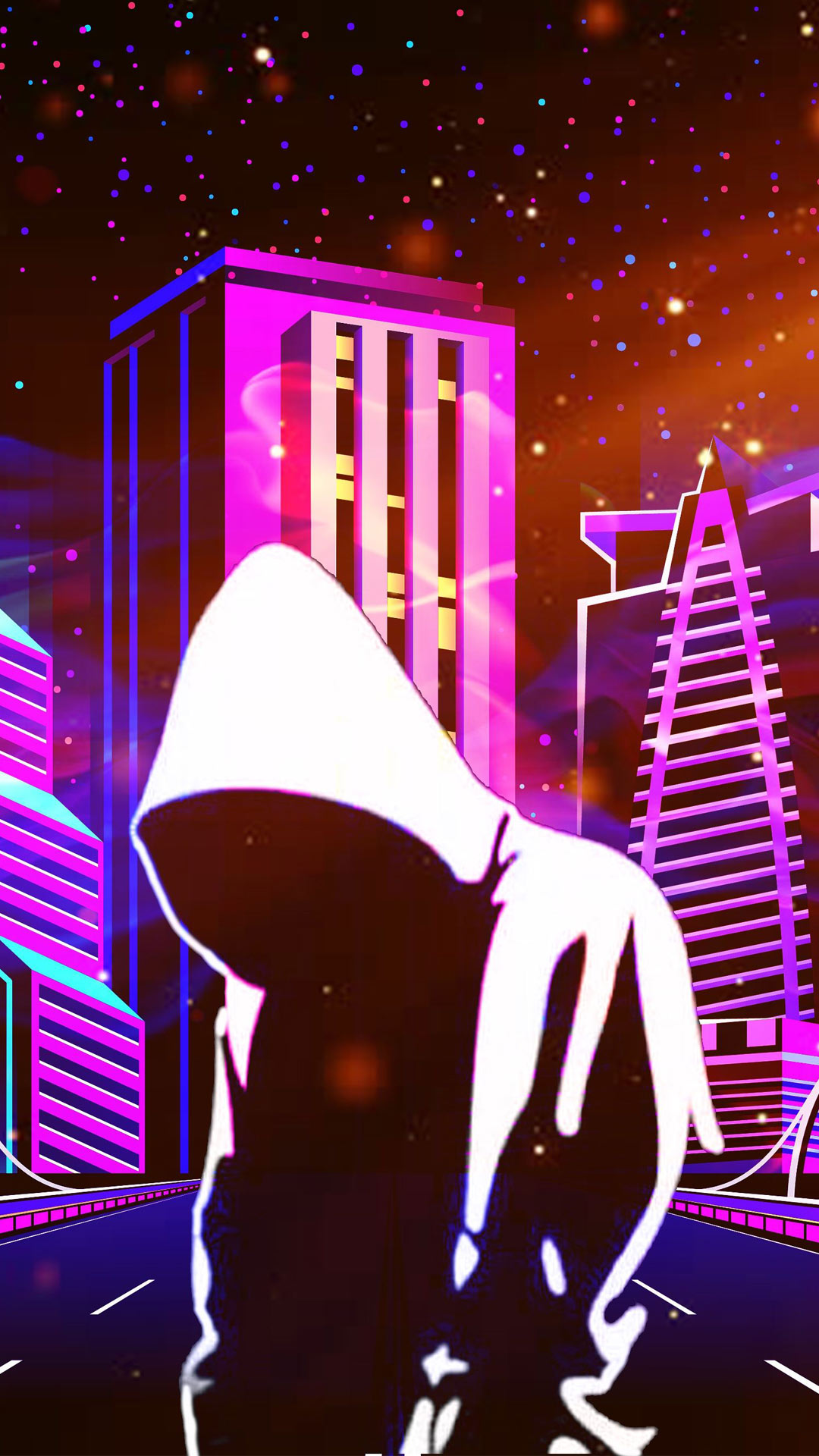 Neon City Hoodie Guy Wallpaper+ Wallpapers Download
