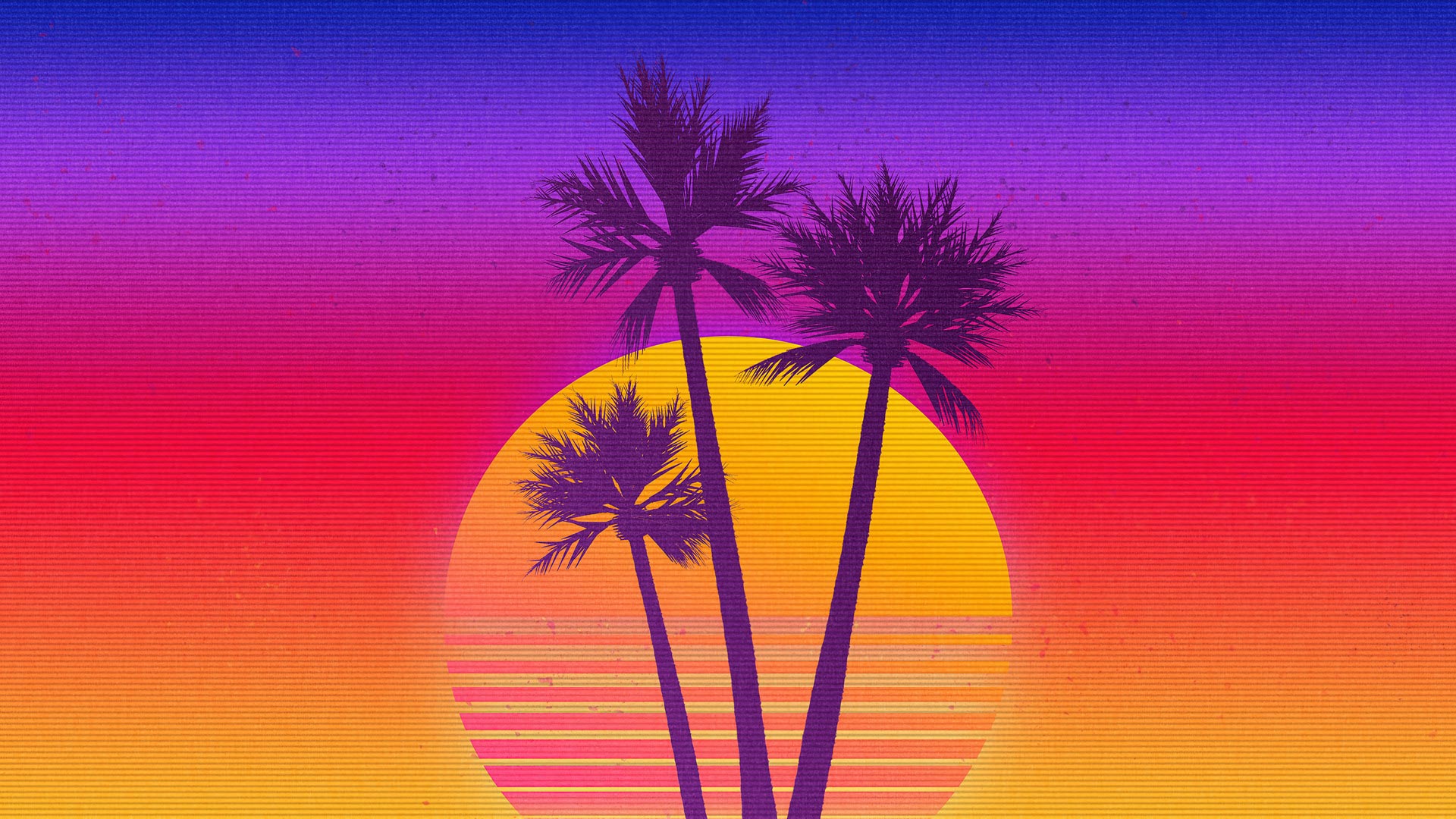 Description: Digital vaporwave landscape, retro 80s style, tropical sunset, palm tree, retro sunset, wallpaper. Download free vintage HD wallpaper and background image for your Windows and Mac computer, laptop, tablet and phone. License: Unlicensed.