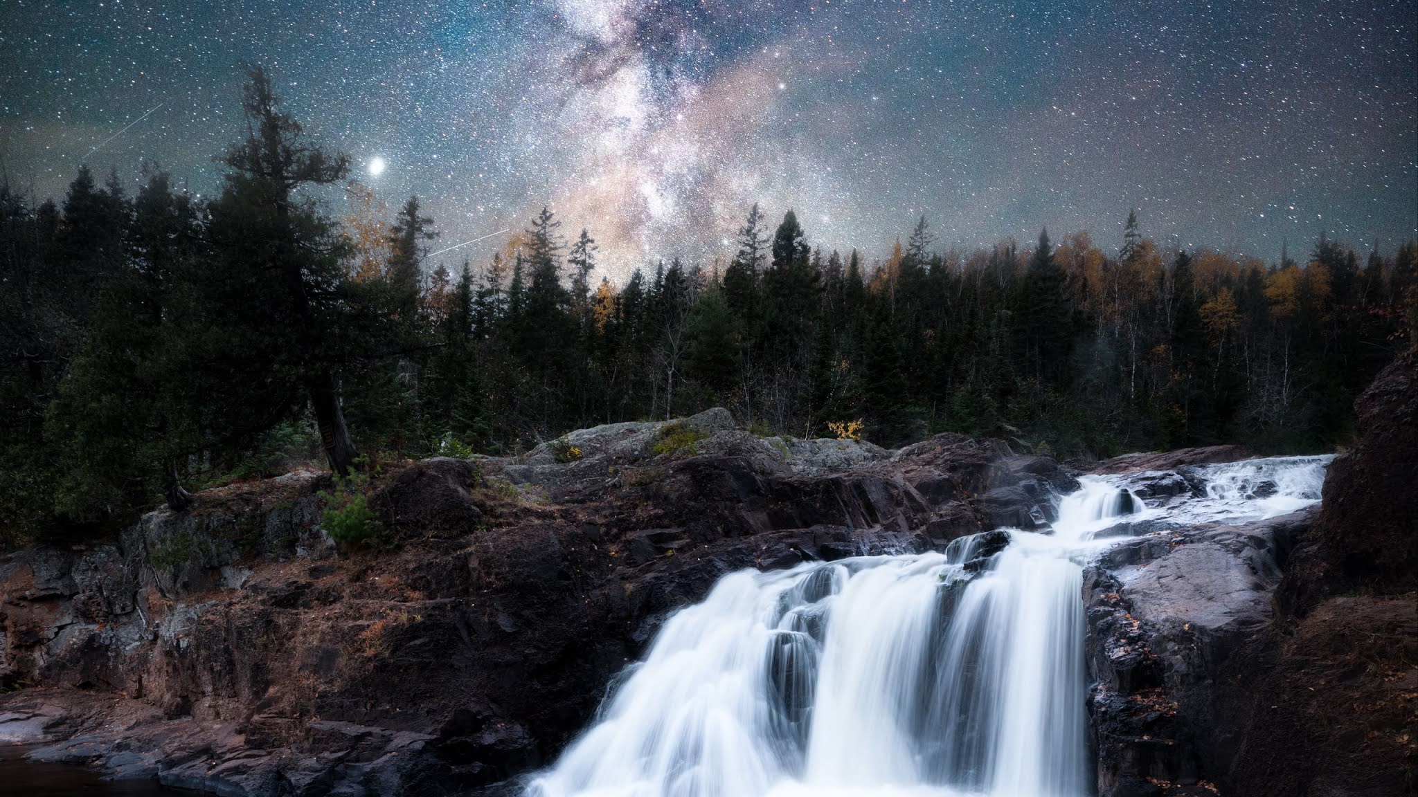 Screen background for beautiful waterfall at night+ Download Wallpapers