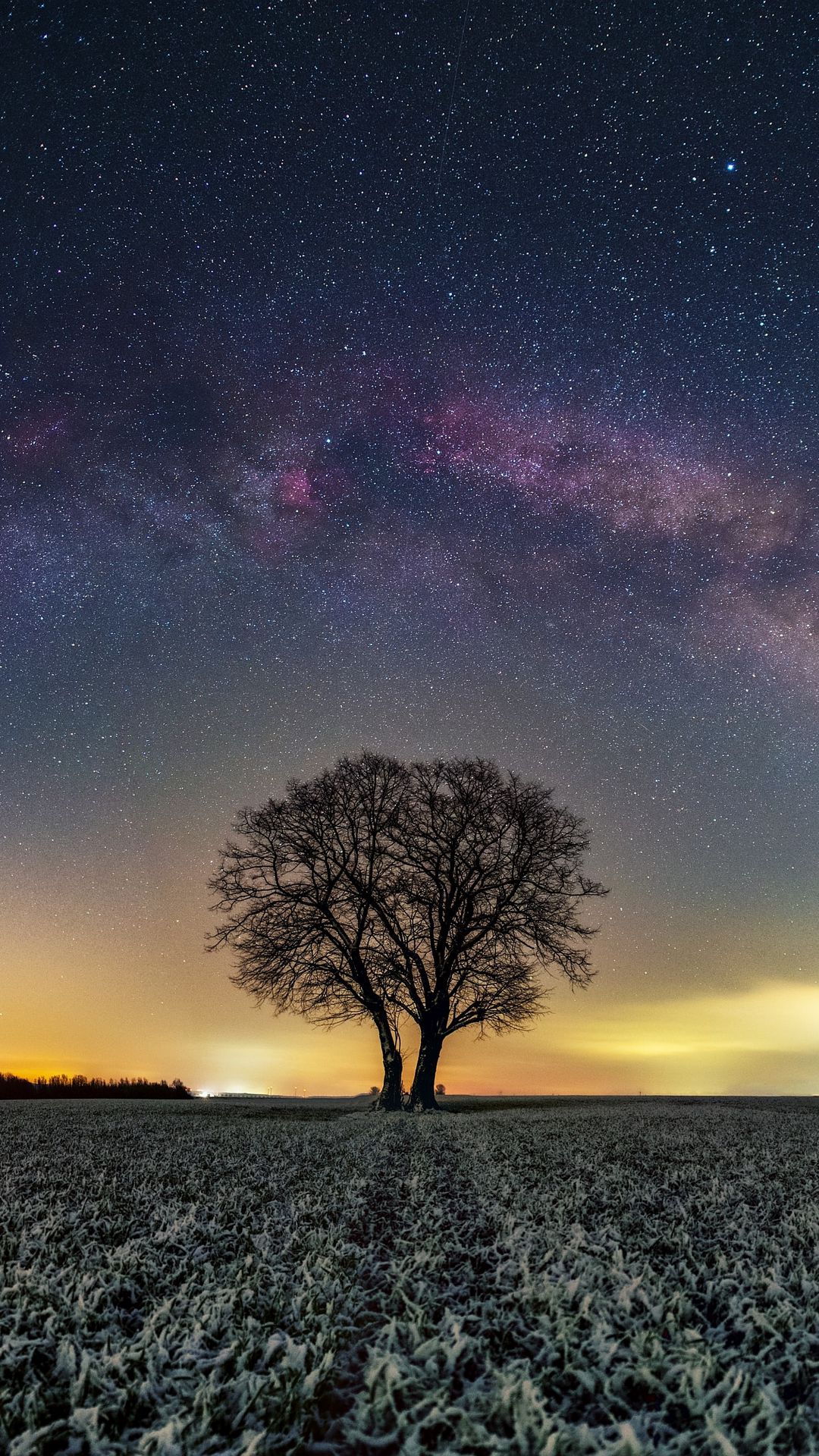 Description: Lonely tree, sunset, field, galaxy, stars, night, nature wallpaper. Download free nature hd wallpaper and background image for your windows and mac desktop, laptop, tablet and phone. Author: Noble Cherkassky License: Unsplash License.