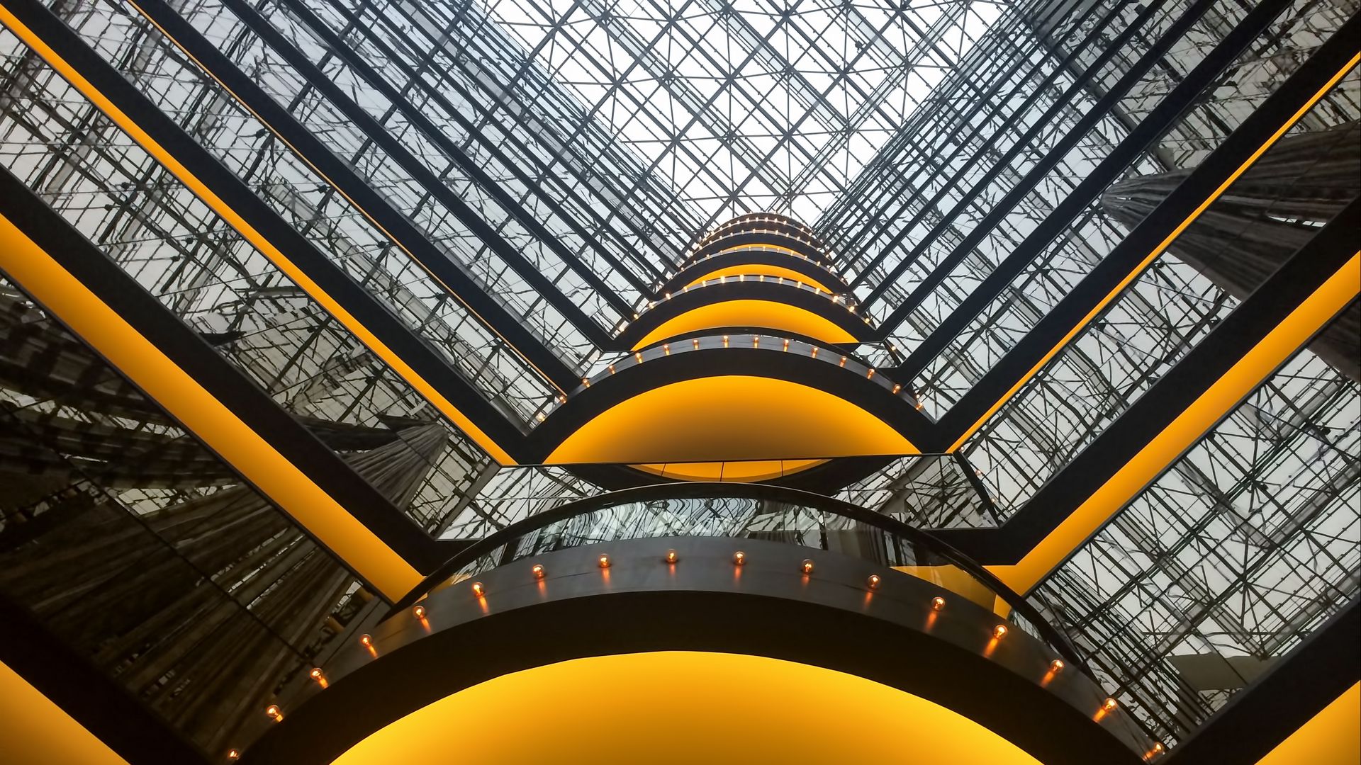 Description: Building, architecture, glass, reflection, bottom view, yellow, black wallpaper. Download free hd photo wallpaper and background image for your Windows and Mac computer, laptop, tablet and phone. Author: Arran Bee (flickr) License: CC BY.
